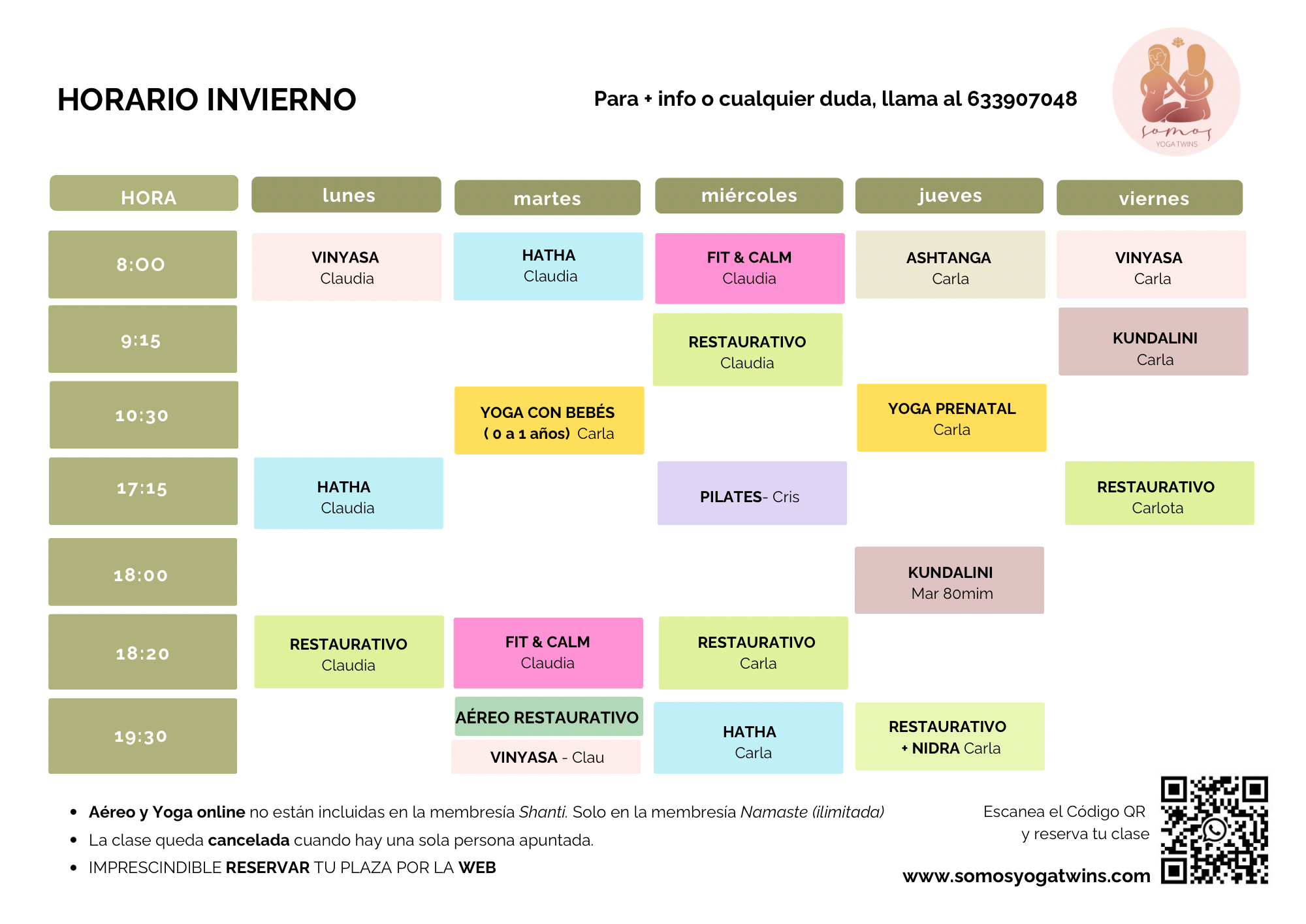 Para garantizar una mejor organización y que todas las clases se desarrollen con fluidez, las reservas deben realizarse con al menos una hora de antelación.